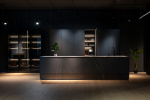 Dada la variedad de materiales se combinan distintas temperaturas de color para resaltar el producto de la manera más adecuada. En el caso de Porcelanosa, que en general trabaja materiales más fríos, le favorece una iluminación de 4.000K, matizado con algún proyector de 3.000K con lente abierta de relleno. Por el contrario, en el caso de Naturaland, que el producto principal es la madera, se trabaja con una iluminación de 3.000K, matizada con algún proyector de relleno de 4.000K, para evitar que “queme” demasiado la madera. En el caso de Santos, donde se exponen cocinas, se trabaja con una iluminación básicamente cálida.