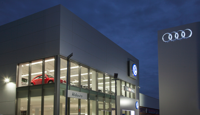 Debido a la alta versatilidad de esta luminaria, es posible ajustar individualmente las escenas luminosas tanto de día como de noche. Durante las horas de oficina, la iluminación invita a los transeúntes a entrar en el concesionario, y el refuerzo de luminarias en la zona hightlight permite guiar la atención del cliente al vehículo que se desea resaltar. Por la noche, un sencillo sistema de control permite reducir los niveles de iluminación, poniendo en marcha un encendido perimetral de los vehículos situados en el escaparate para proporcionar una vista atractiva durante las horas de oscuridad.