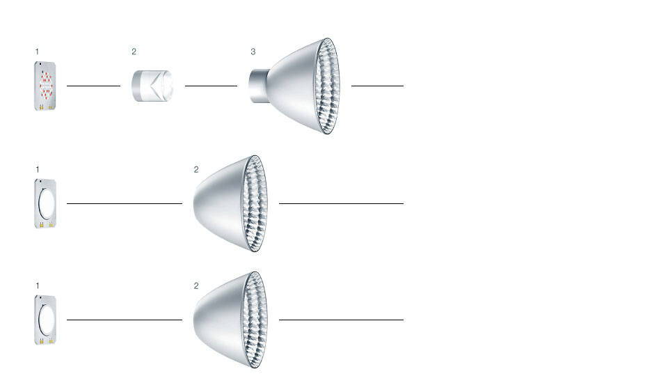 3 | Aluminium-sputtered high-precision reflector made of plastic, for brilliance and precision